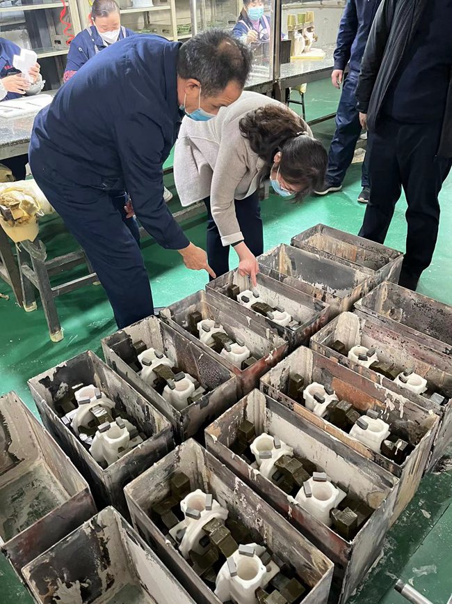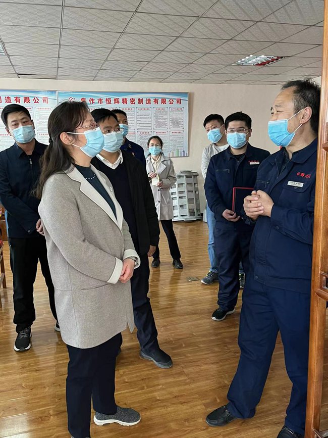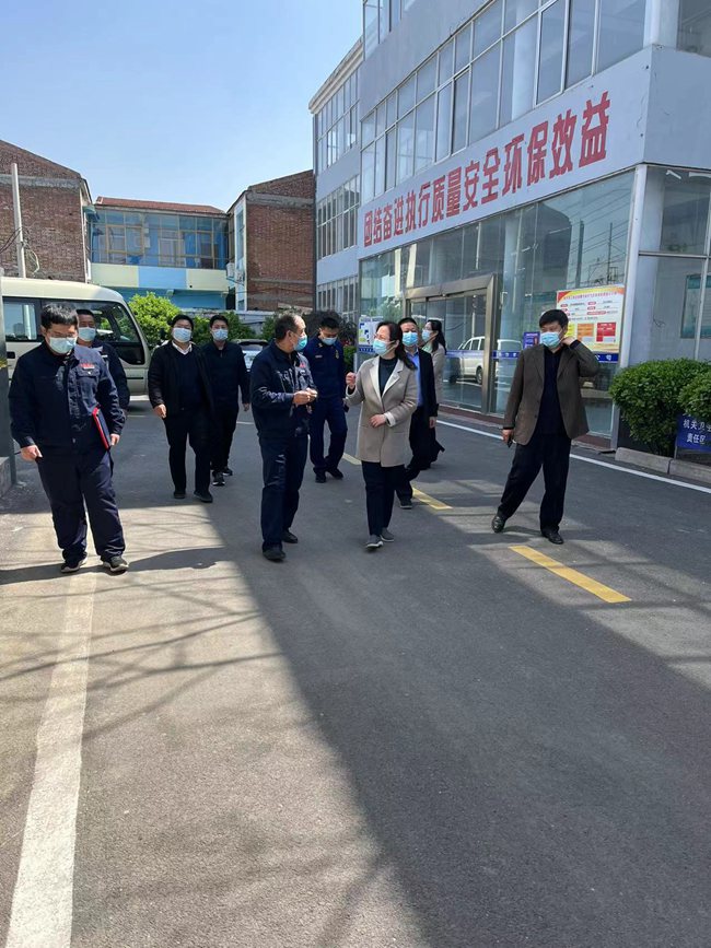 馬村區(qū)王婕區(qū)長帶領消防,安全等一行人員來我廠檢查指導工作,總經(jīng)理張福根向其介紹了安生生產(chǎn)工作情況、防疫工作情況、產(chǎn)品經(jīng)營情況并陪同實地參觀了生產(chǎn)車間,分別講解各部門生產(chǎn)工序幫助其更全面了解我公司的情況。